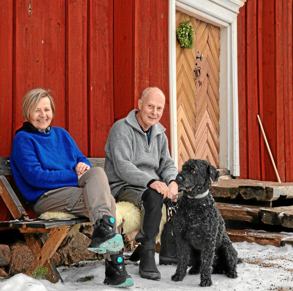 Huset var ett ruckel med nedrasat tak och ruttna timmerstockar. Men Anders och Pia såg charmen i den övergivna bergsmansgården från 1700-talet . Nu står det röda timmerhuset på släktgården i Leksand, julpyntat i gammeldags stil.