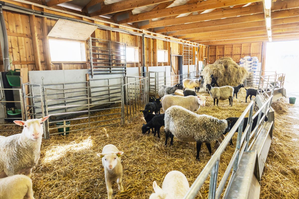 Vi avslutar besöket med dem som står i centrum för gårdens verksamhet, fåren. Inne i det nybyggda fårhuset står 25 tackor och fyra baggar i varsin inhägnad, några små söta lamm har också börjat att komma.