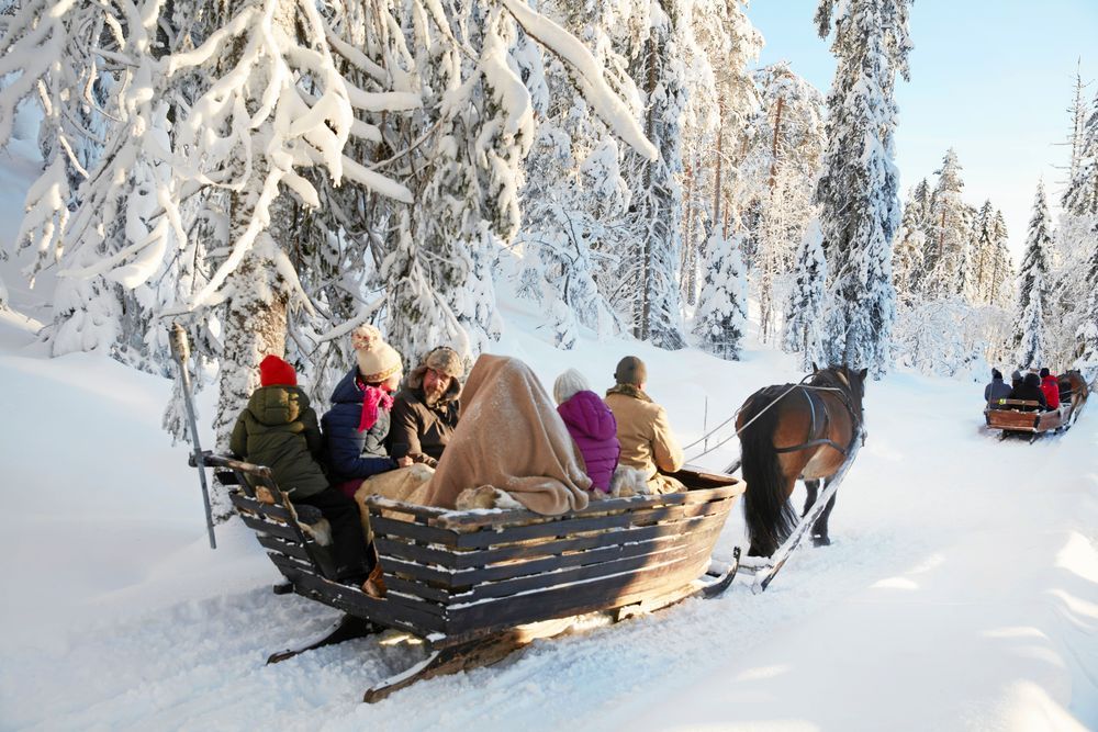 Från släden styr Anna-Karin Bennberg de starka arbetshästarna Helmer och Bella i snöspåret i Grönklittskogen nära Orsa.