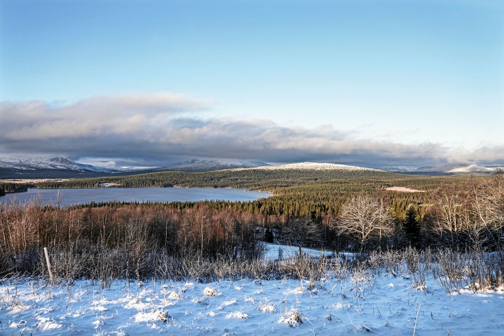 I en reseannons från 1905 beskrivs Kolåsen som en av Sveriges vackraste platser. Det är svårt att inte hålla med, särskilt en dag som denna när nysnön just har färgat landskapet vitt och solen glittrar i sjön Äcklingen.