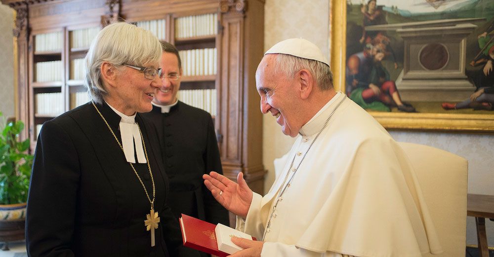 Hon ser fram emot det historiska besöket av påven Franciskus med anledning av att det har gått 500 år sedan reformationen. Det är påven som tillsammans med Lutherska världsrådet har tagit initiativet till besöket, som ett led i en mångårig process mellan kyrkorna som ska "leda från konflikt till gemenskap".