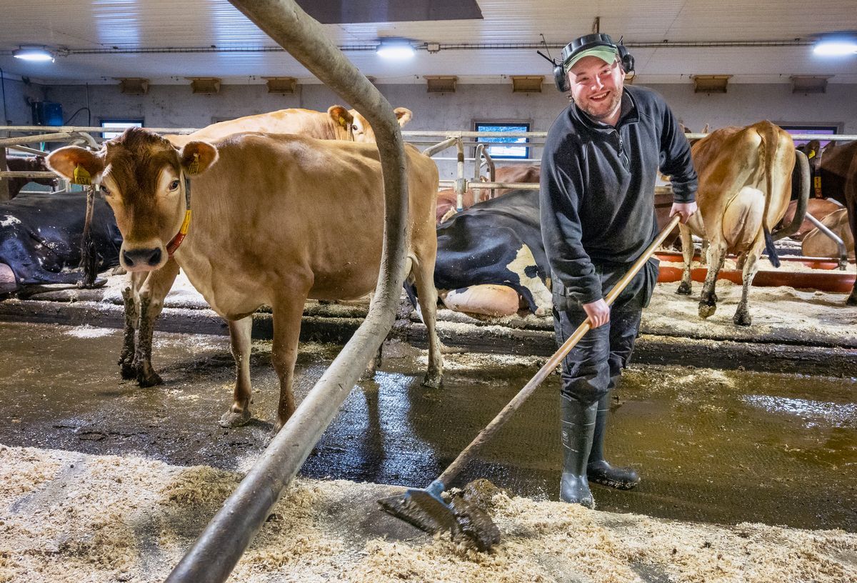 – Sedan ska jag hem till mina egna kossor! Men jag ser det inte som att jobba. Man vaknar och gör det man ska och sen är dagen slut. Och så älskar jag kor, de är så roliga att arbeta med.