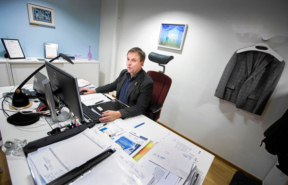 Utanför hans kontor står kommunens stolta slogan som utlovar 80 000 invånare 2030, vilket innebär en ökning med cirka 7 000.