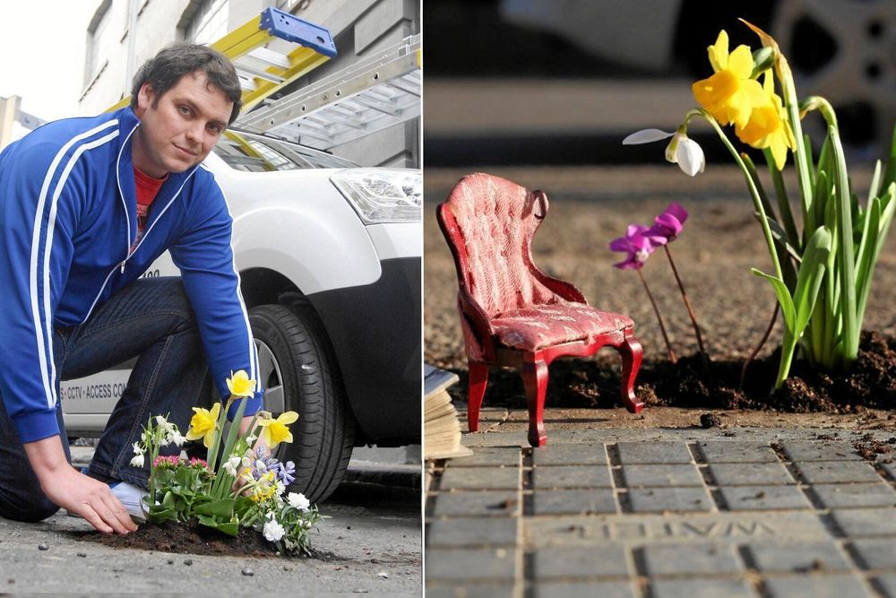 Ett exempel är staden Hamtrack i Michigan där Paige Breithart en dag fick nog av potthål som orsakade skador på bilarna och tvingade bilisterna till farliga girar runt hålen. När de rapporterade skadorna inte lagades fyllde Paige och hennes vänner bilen med påsjord och blommor. Sedan åkte de runt och fyllde de 40-50 djupa hål i vägarna med blommor.