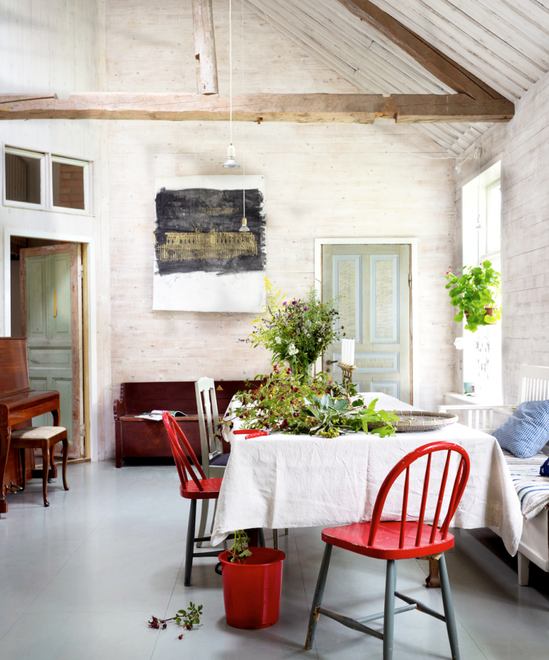 Sedan dess har hon utvecklat hemmet med sin egen stil. En ständig inspirationskälla är släktens fäbodvall i Hälsingland.