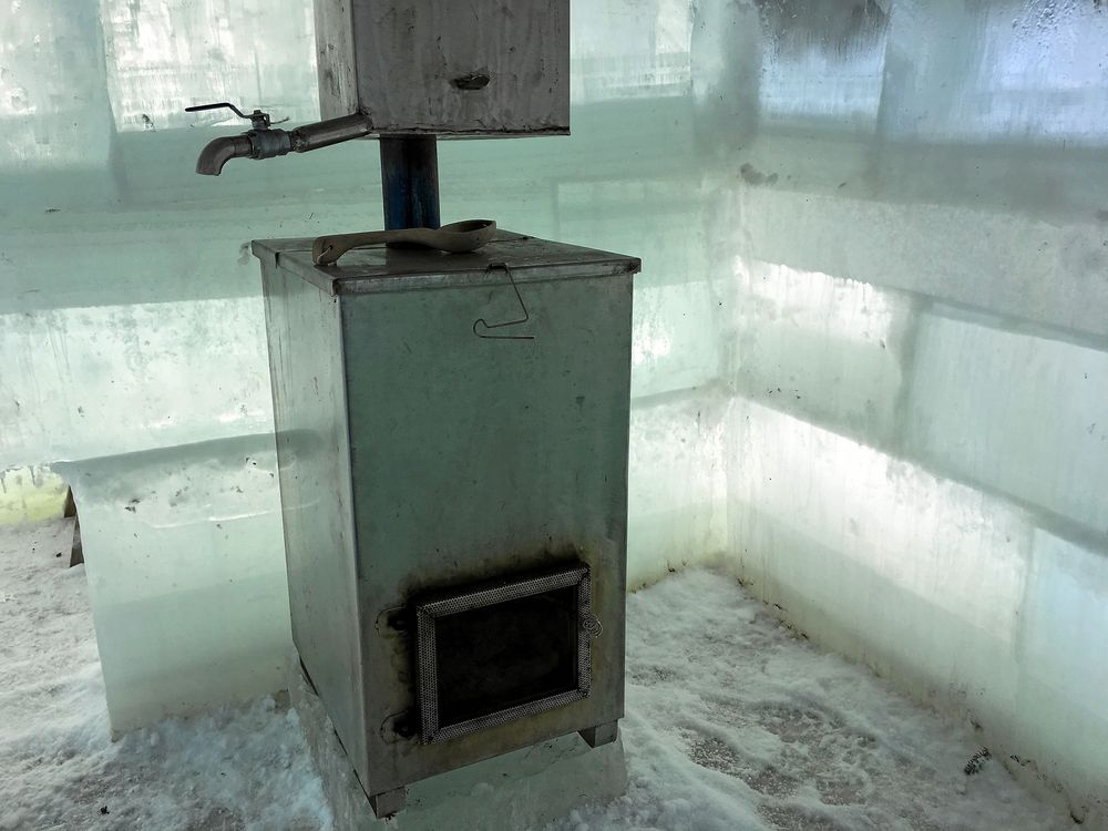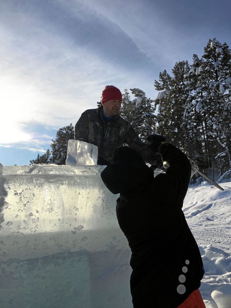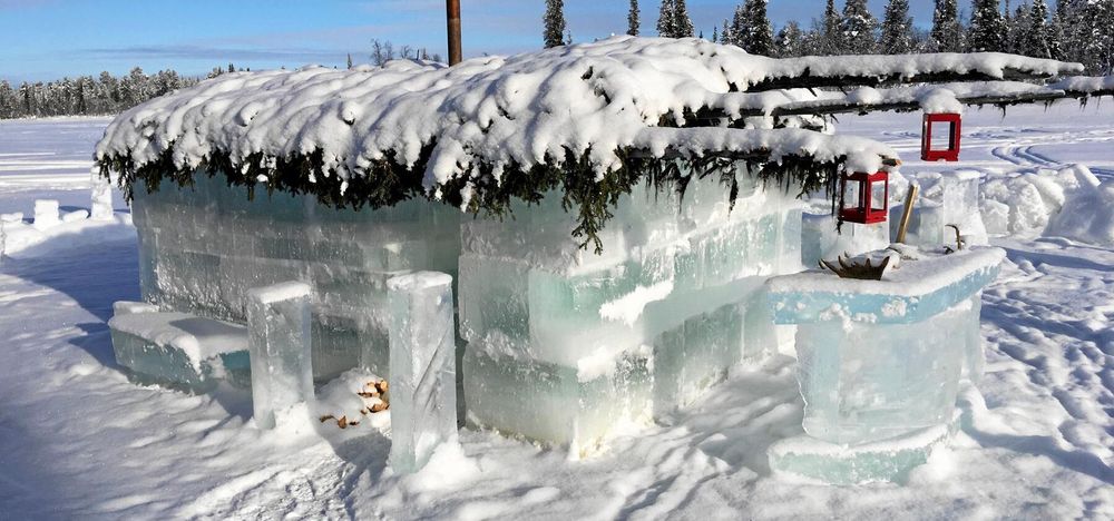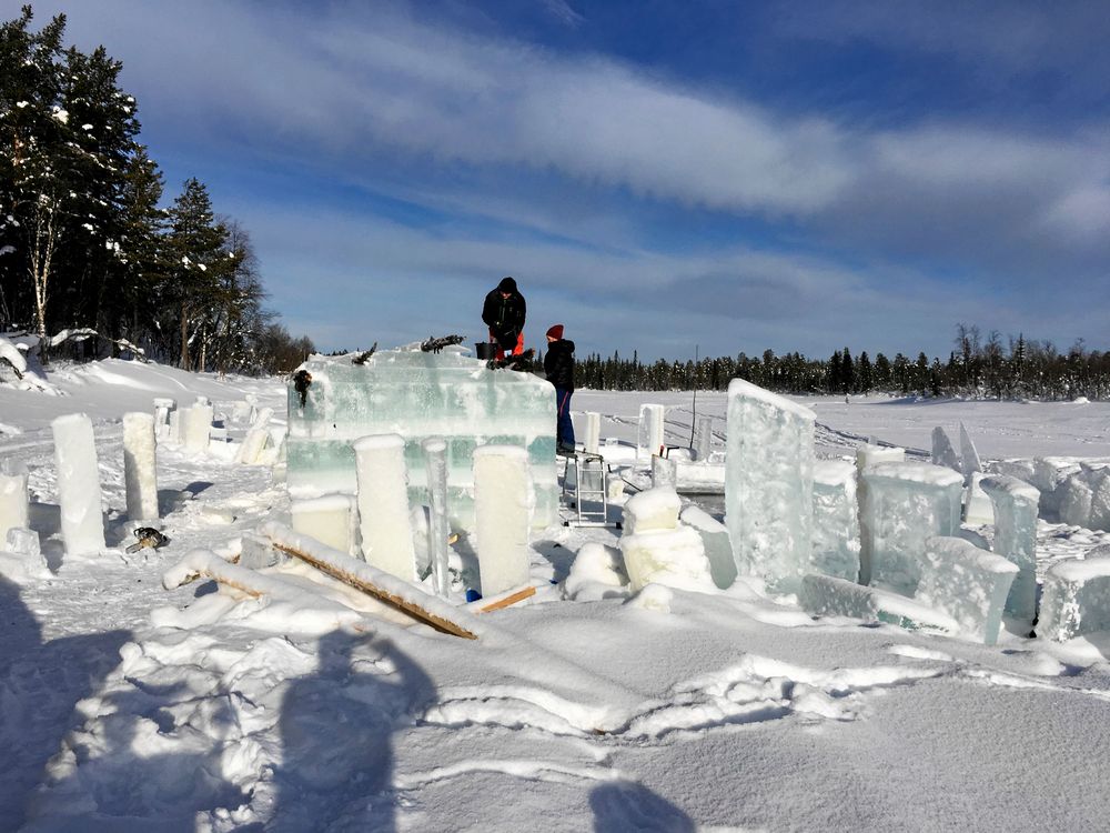 Det har tagit ungefär 400 timmar att såga ut och stapla isblocken som väger mellan 200 och 400 kilo styck. Men redan efter fem-sex bastukvällar kommer den att försvinna.