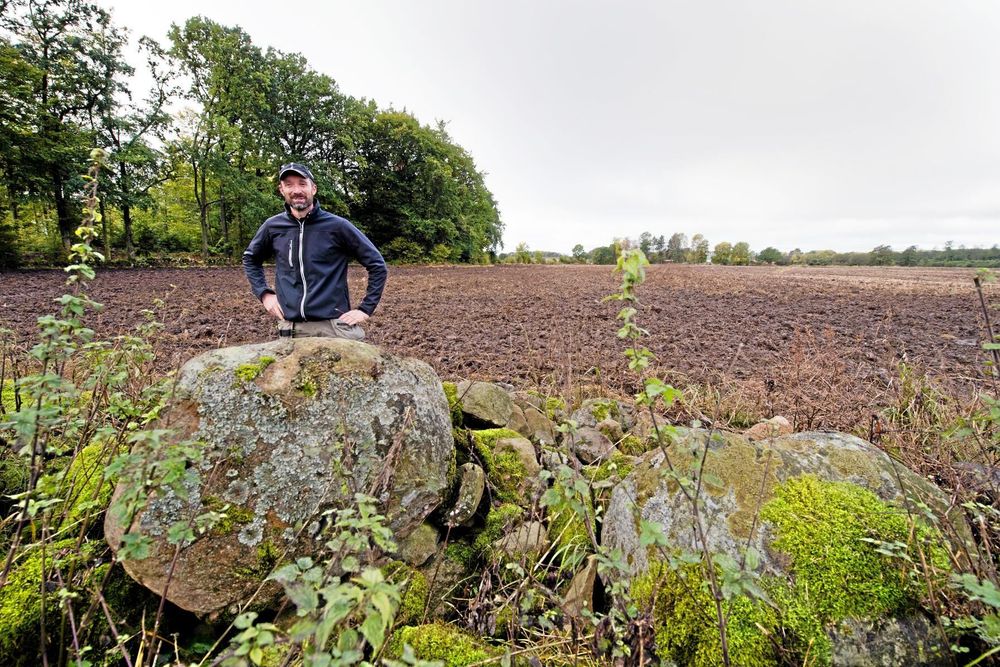 På Joakim Franks mark finns en 180 meter lång stenmur som delar tre fält på omkring två hektar vardera.