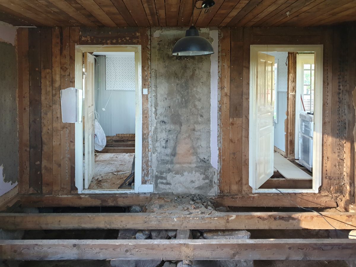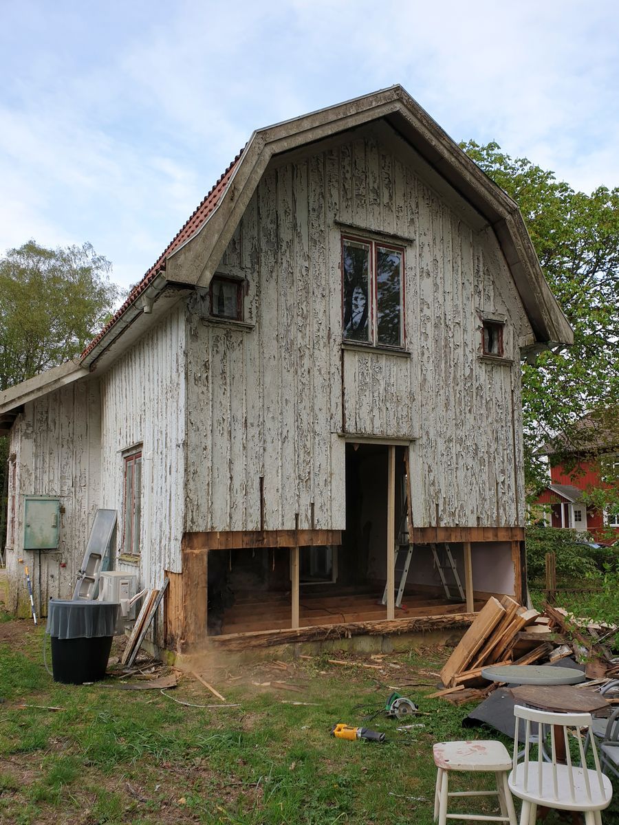 Ytterväggarna, som var ruttna nedtill, sågades av och ersattes också av nya. Med hjälp av Peter, släkt och vänner, egen händighet och modet att ge sig på nästan vad som helst blev det istället en rekordsnabb helrenovering.