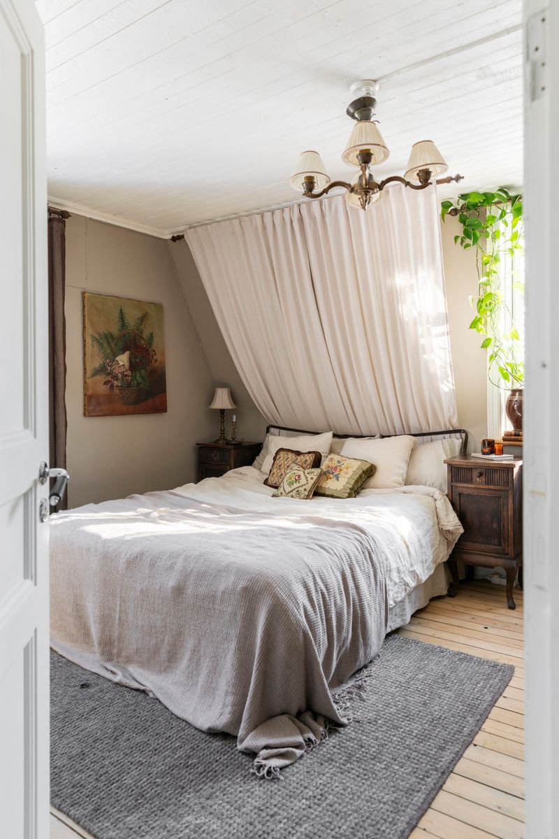 Varenda en av de 66 kvadratmeterna under Lövhagas brutna tak är fylld med hantverk och hemtrevnad.
