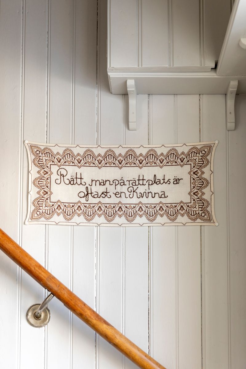 Som det står broderat med fantasi och flinka fingrar på en loppisduk på väggen i trapphallen,”Rätt man på rätt plats är oftast en Kvinna”.
