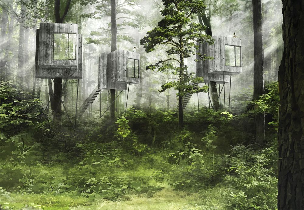 Planen är att vara igång redan nästa sommar. Varje hydda är byggd kring en trädstam och ska få rinnande vatten och el, samt kök, toaletter, uppehållsrum och fyra sovplatser, samt en takterass där man kan njuta av utsikten.