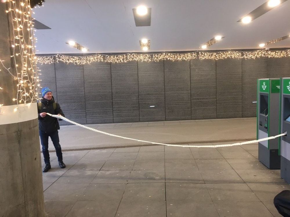 – Men är man fem personer och ska ha både tur- och retur-biljett så blir det ju väldigt långt. Vi mätte på kvällen i Storlien och hela remsan blev 3,5 meter lång.
