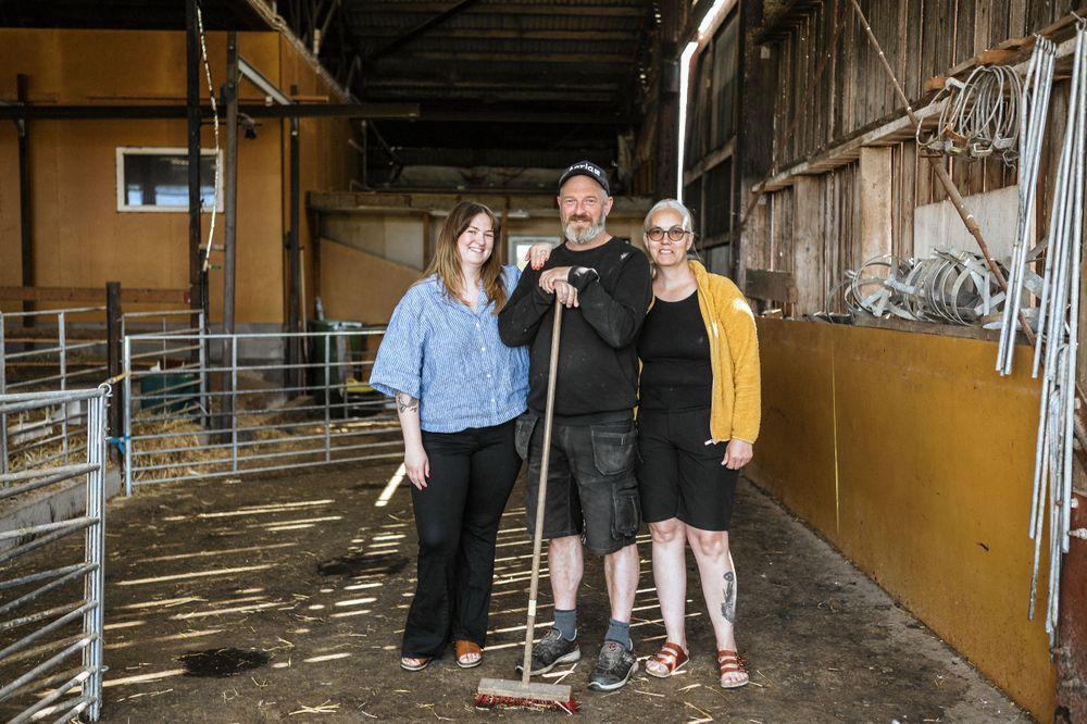Framme vid Rykets Gård tar Cicci, Christer och dottern Amanda tar emot.