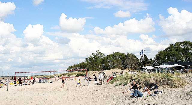 Skanör havsbad och Falsterbo strandbad bjuder på flera kilometer långa sandstränder med pastellfärgade badhytter. De flesta badare söker svalka i Kämpinge i öster. Trängseln avtar dock längre västerut.