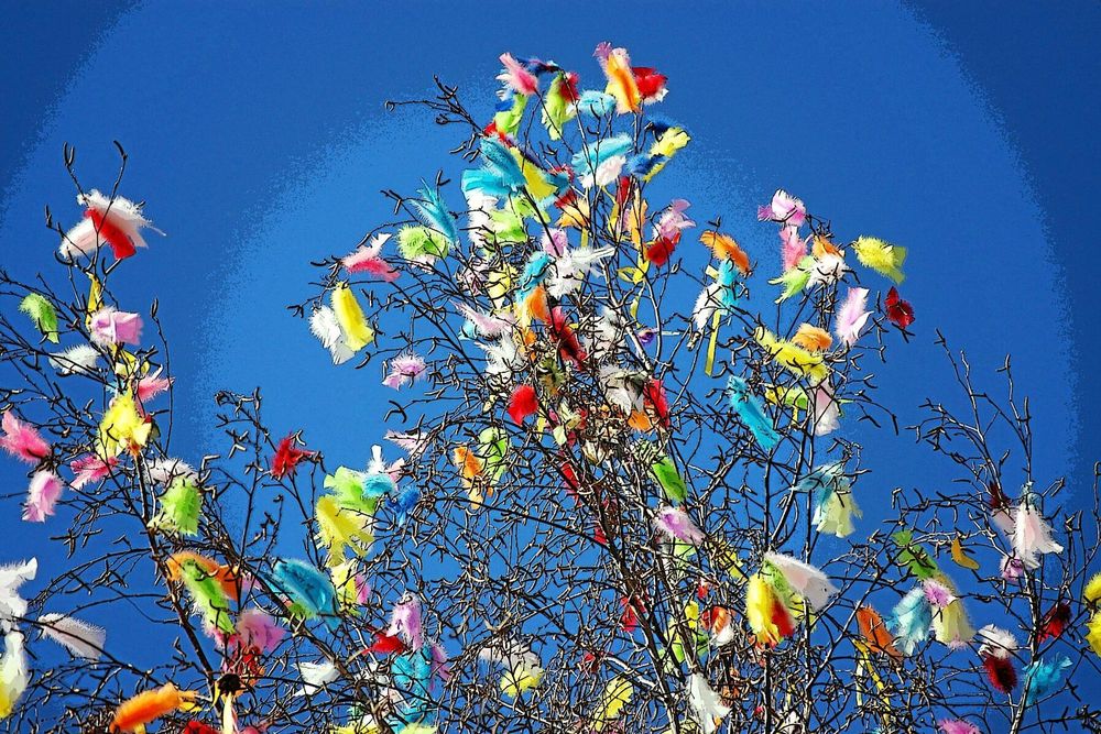 Även i Arboga dekoreras Stora torgets lyktstolpar med björkris som är pyntat med färgglada tygband. Här är det andra året i rad som kommunen väljer att dekorera torgen med alternativ till påskfjädrar.