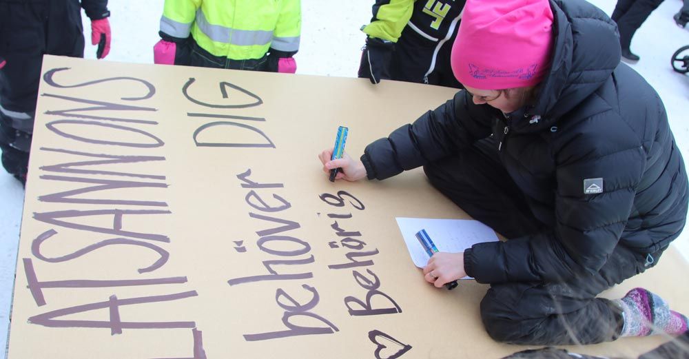 Det kom fler än Markus hade trott. Hela 600 personer samlades till en manifestation utanför skolan, fast det bara bor 121 personer i själva Gummark, och totalt runt 1000 inom skolans upptagningsområde.