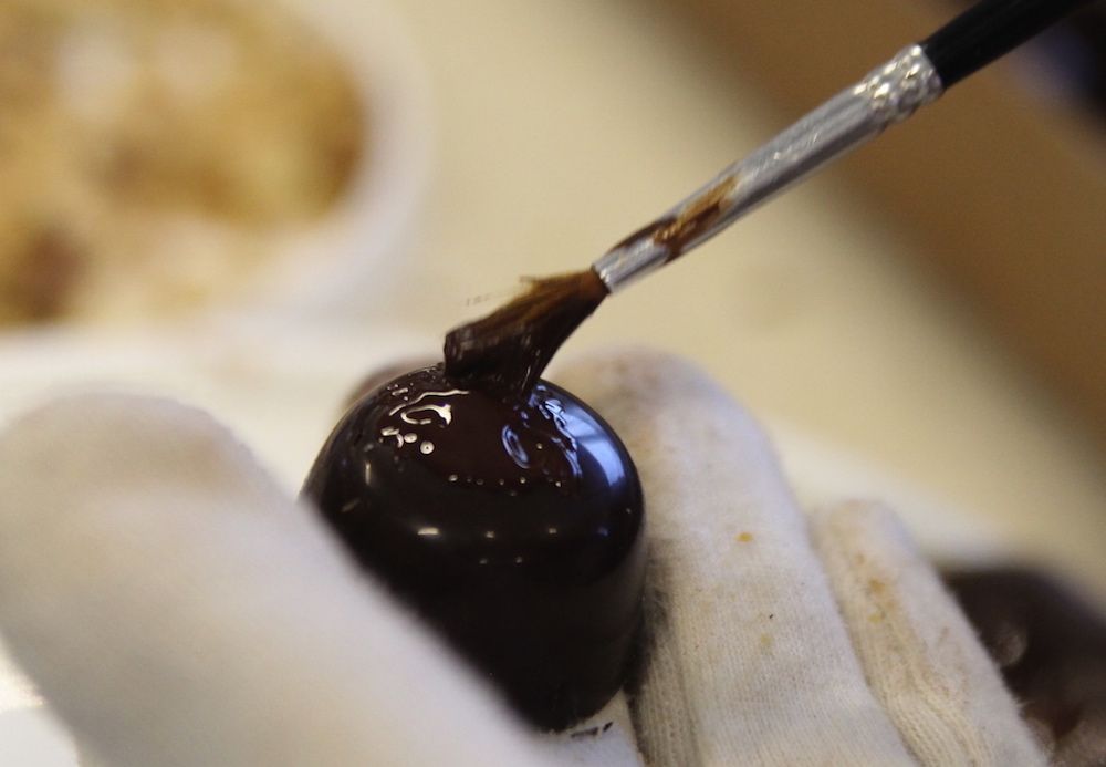 Det blir tusentals praliner, kolor och andra läckerheter gjorda av choklad varje vecka och regelbundet kommer alla slags människor till lokalen för att handla.