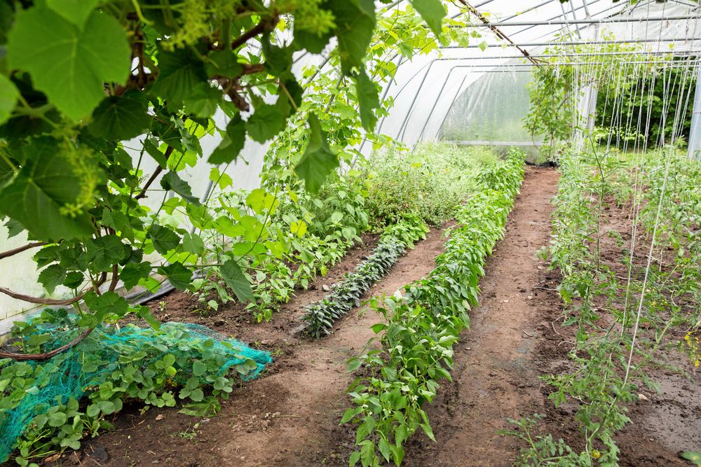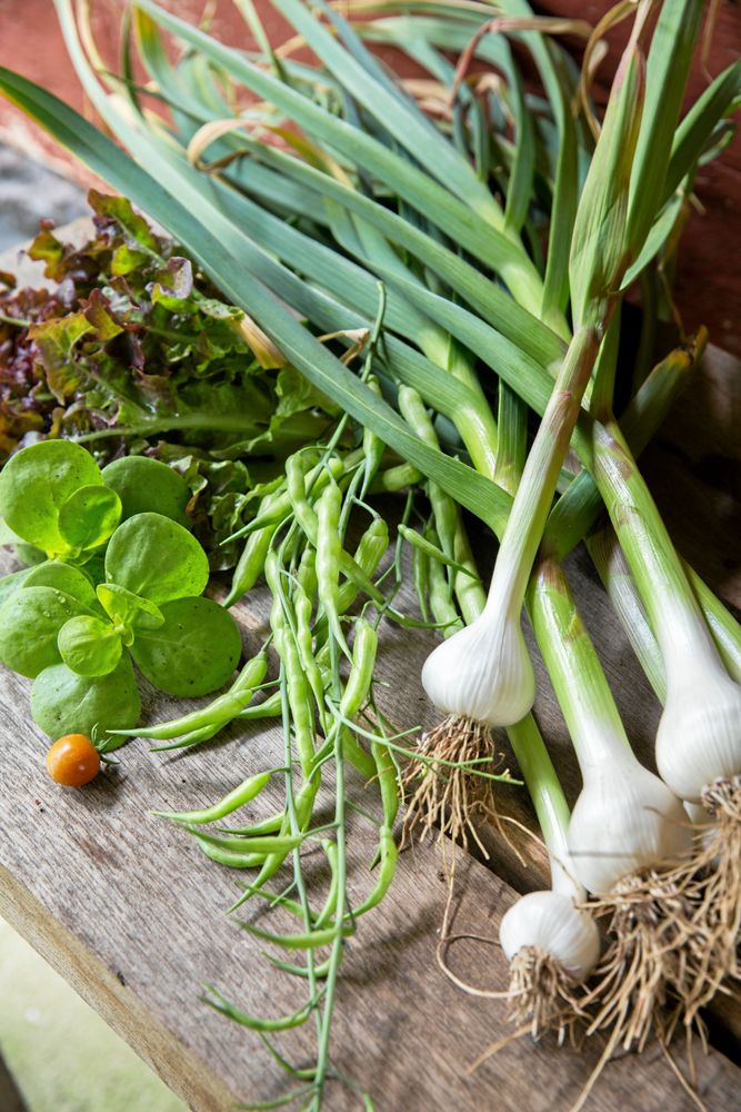 Kål, bönor, sallat, hallon, haverrot, vitlök och potatis vattnas med eget vatten, liksom det 200 kvadratmeter stora tunnelväxthuset.