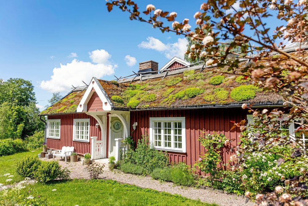 Ett litet bedårande Hans och Greta-torp med grästak, knarrande golv, öppna spisar, vinklar och vrår. Det är fonden för Martina Söderhielms och hennes familjs naturnära byliv med blommor och djur och gemenskap.