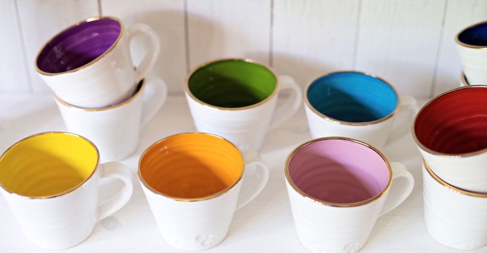 De här kopparna med guldkant och färgglad insida går åt som smör i solsken.