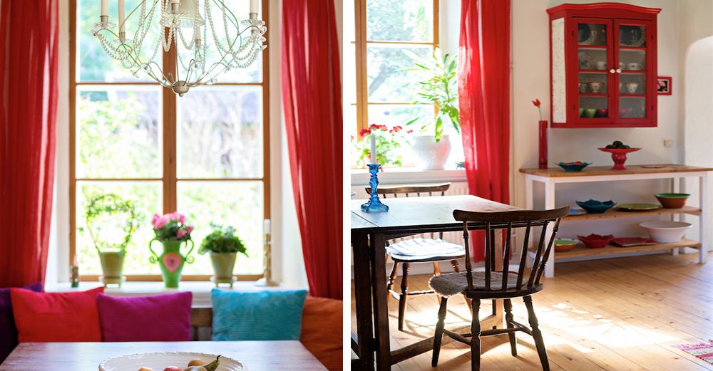 I dag är det gamla mejeriet en bekvämt och modernt inredd pärla. Överallt syns Jeanettes kärlek till glada och starka färger. Klarrött, illgult och ärtgrönt.