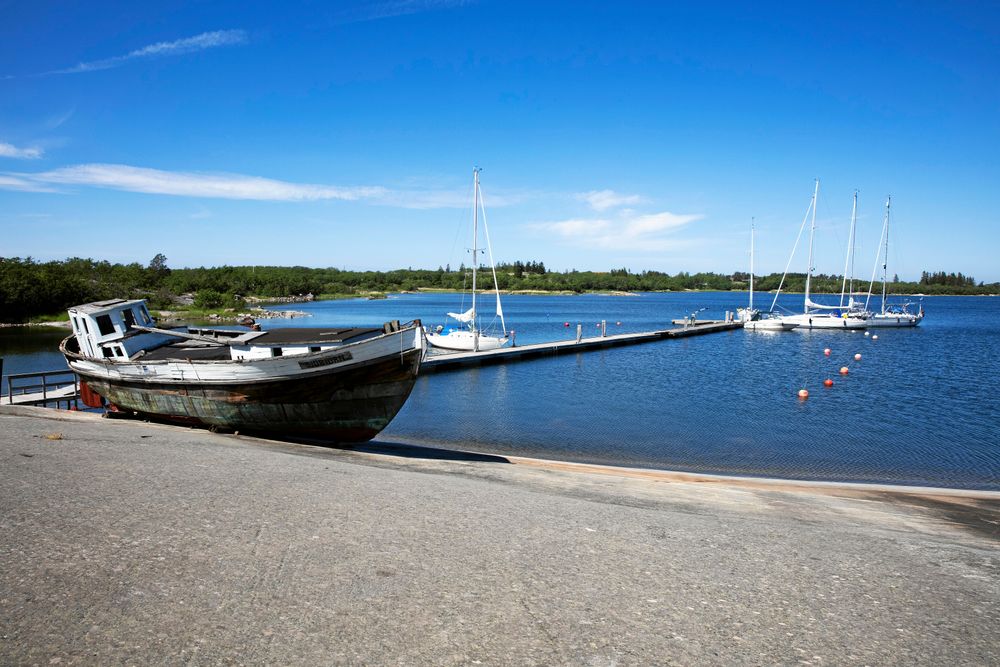 Å andra sidan finns faktiskt det mesta här som man kan behöva. Matbutik med stort sortiment, post, skola, bibliotek, bredband via fiber, hotell, gästhamnar. Det är en ö med liv, framåtanda och jobb. Den som söker sig hit behöver inte vara sysslolös.