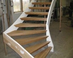 Trappsnickeri är Julias specialitet. Eftersom hennes pappa sedan länge är expert inom området har hon haft en perfekt läromästare – och alla trappor tillverkas efter kundernas exakta mått och önskemål om form, träslag och annat. Materialet till trapporna, och även andra snickeriprodukter, tas från den egna skogen (familjen har 60 hektar).