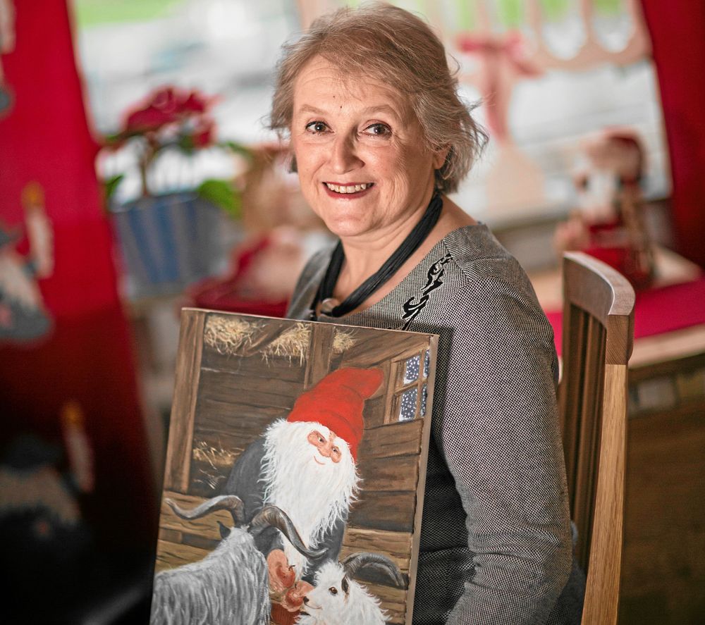 – Jag har alltid tyckt om tomtar, säger Kerstin som även haft utställningar med sina tomtemotiv i original.