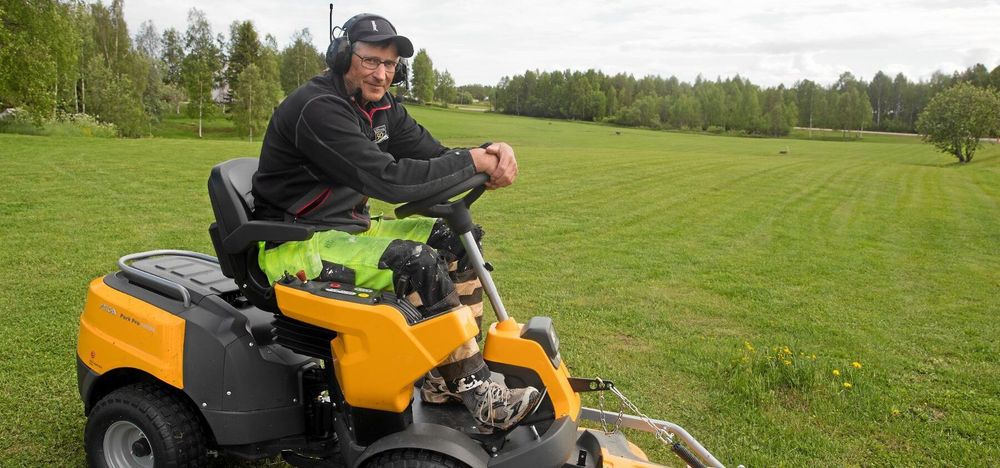 Ingemar Andersson bor i byn Vitå i Norrbotten. Där klipper han en gräsmatta som till ytan motsvarar fem fotbollsplaner.