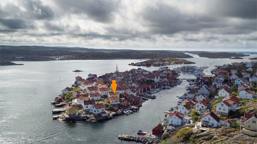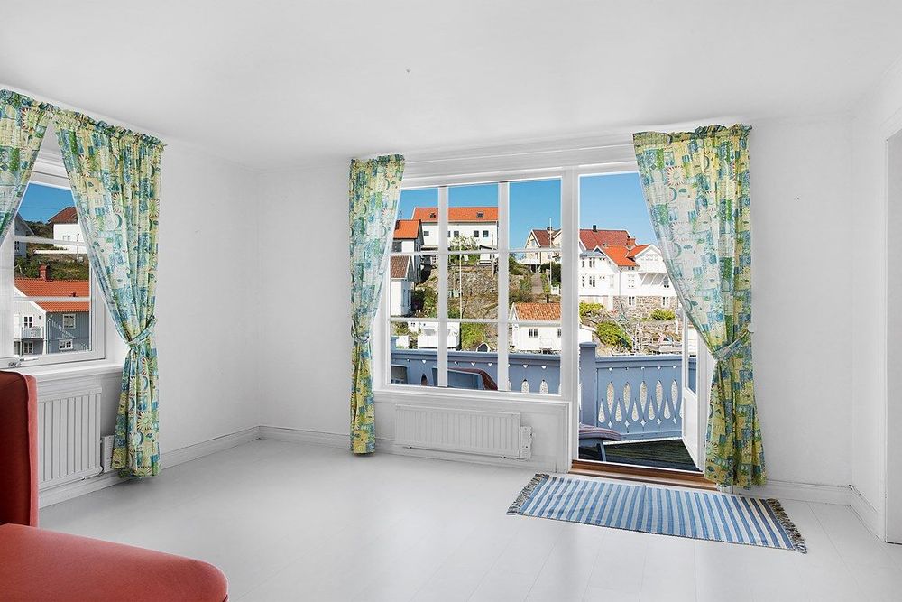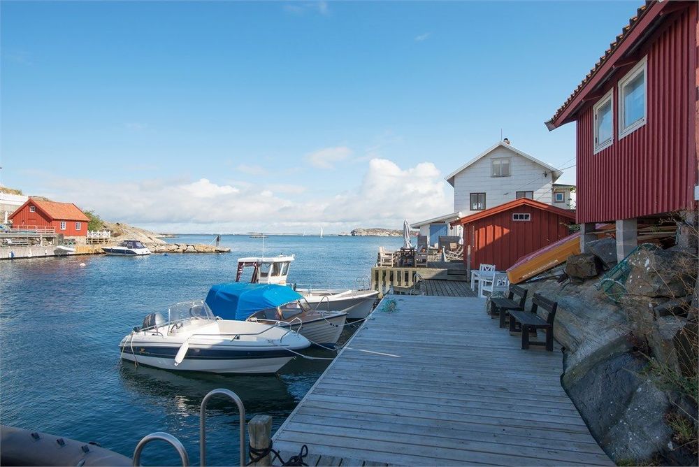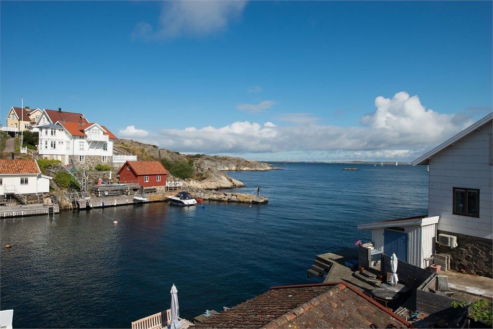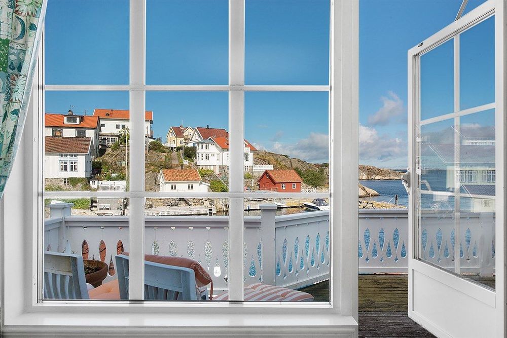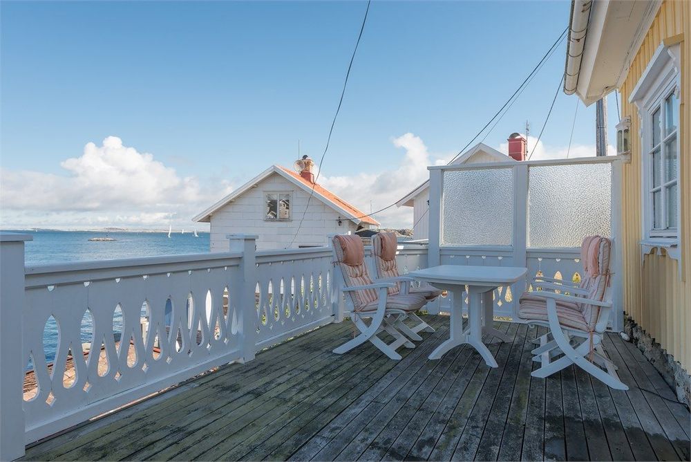 Invändigt finns kök, badrum, vardagsrum och en till två sovrum och alla rum är ljust inredda. På övervåningen finns braskamin och balkong med utsikt över Gullholmsrännan.
