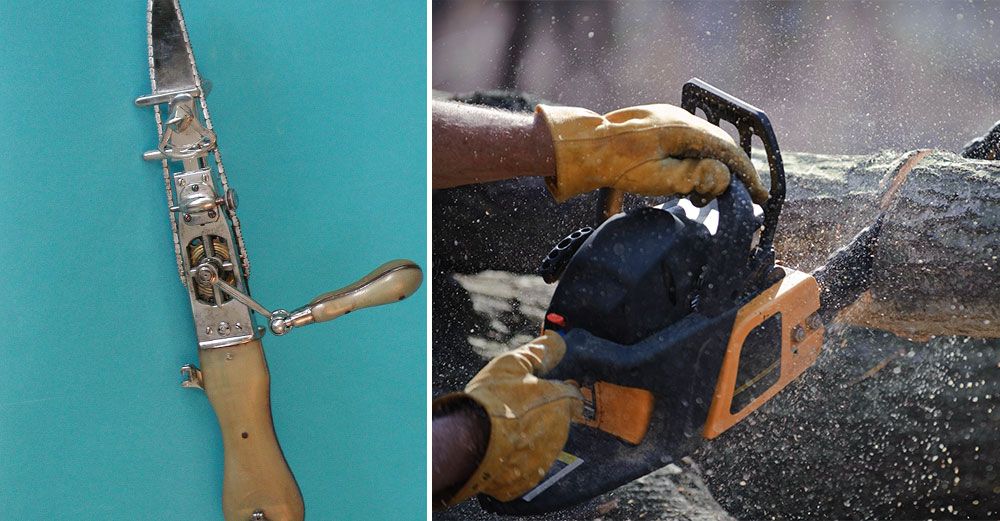 Föregångaren till konstruktionen var ett instrument, osteotom, som användes av ortopeder för att såga och kapa ben.