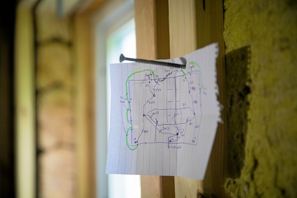 Emil har själv gjort bygglovsritningarna. Från början tänkte sig han och Nina ett lite enklare bygge, med återanvändning av mycket material.
