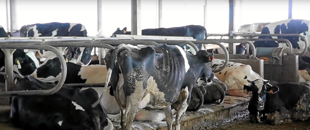 Korna är enligt organisationen extremt underviktiga, flera hade skador och hälta. På filmen syns utmattade och nedsmutsade kor ligga i gödsel och urin.