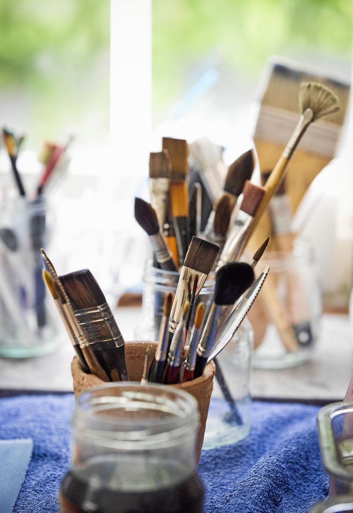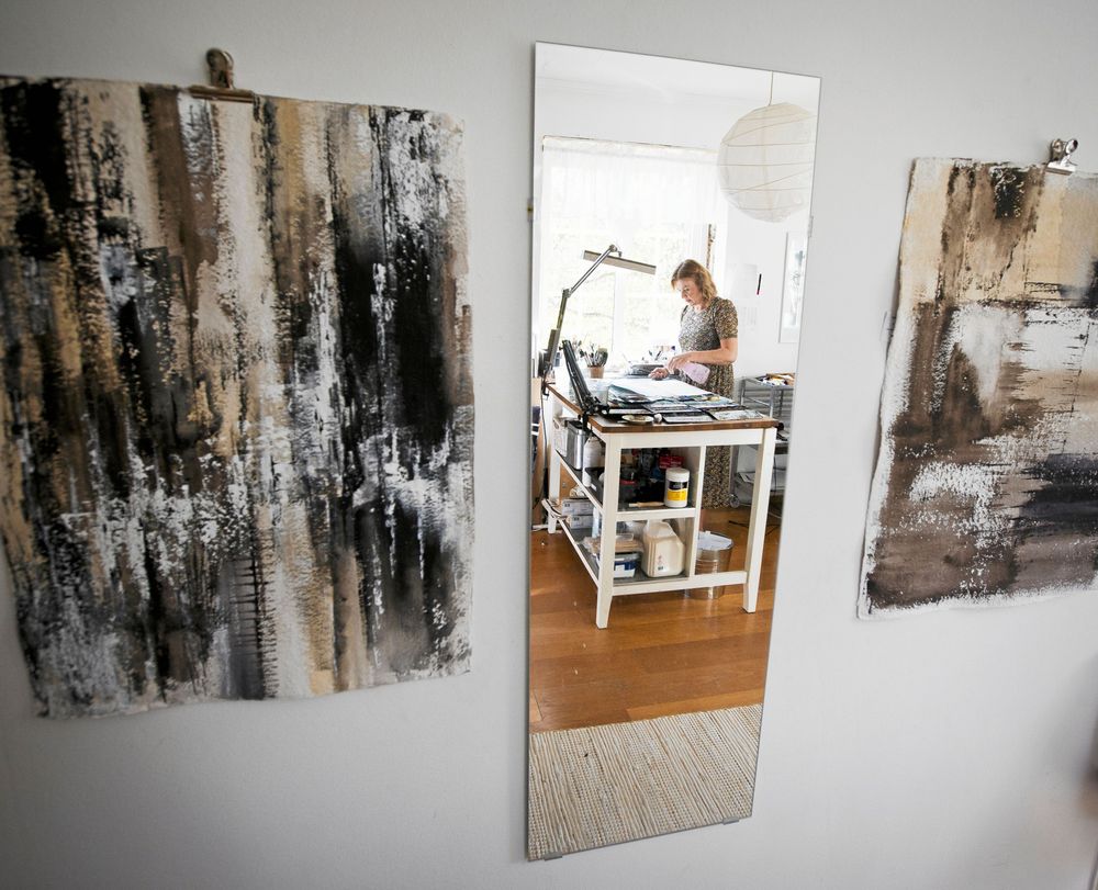 – Jag är lugnare och tryggare i mig själv, säger hon och doppar penseln i vattenglaset än en gång.