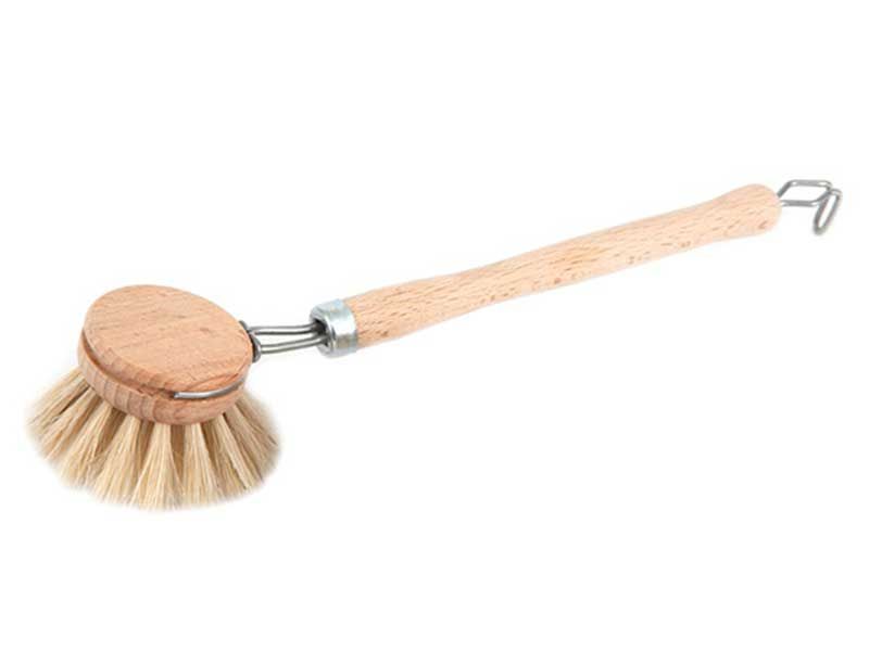 Plastdiskborsten är en riktig tråkig plastförbrukningsvara som inte kan återvinnas. Byt ut mot en bortse av naturmaterial och du har en borste som håller i flera månader. Diskeffekten är utmärkt, den ger en fin retrokänsla till köket och när borsten är slut kan huvudet bytas ut mot ett ersättningshuvud. Dessutom kan metalldelarna avlägsnas och resten av borsten kan läggas på komposten.