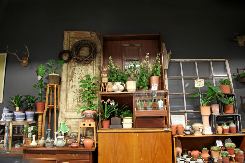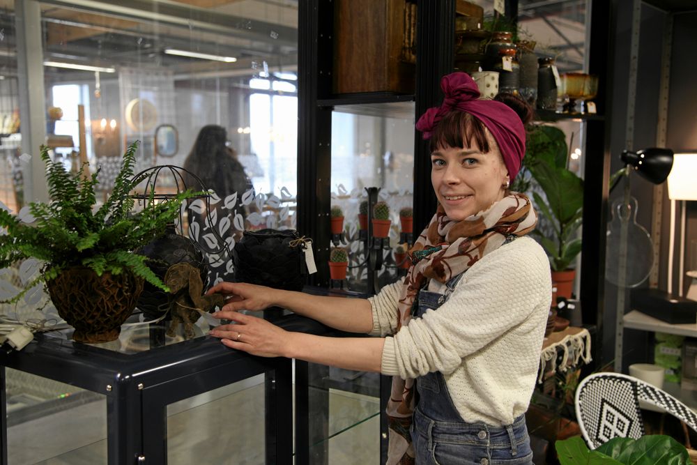 Inne i butiken är det stort fokus på arrangemanget av växter och andra produkter, som är framställda på vackra och fantasifulla sätt.