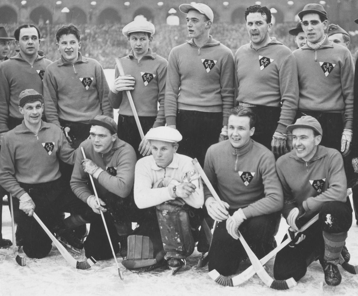 1933: Sven ”Sleven” Säfwenberg får bragdguldet efter att hans IFK Uppsala besegrat Karlstads-Göta i SM-finalen med 11–1.