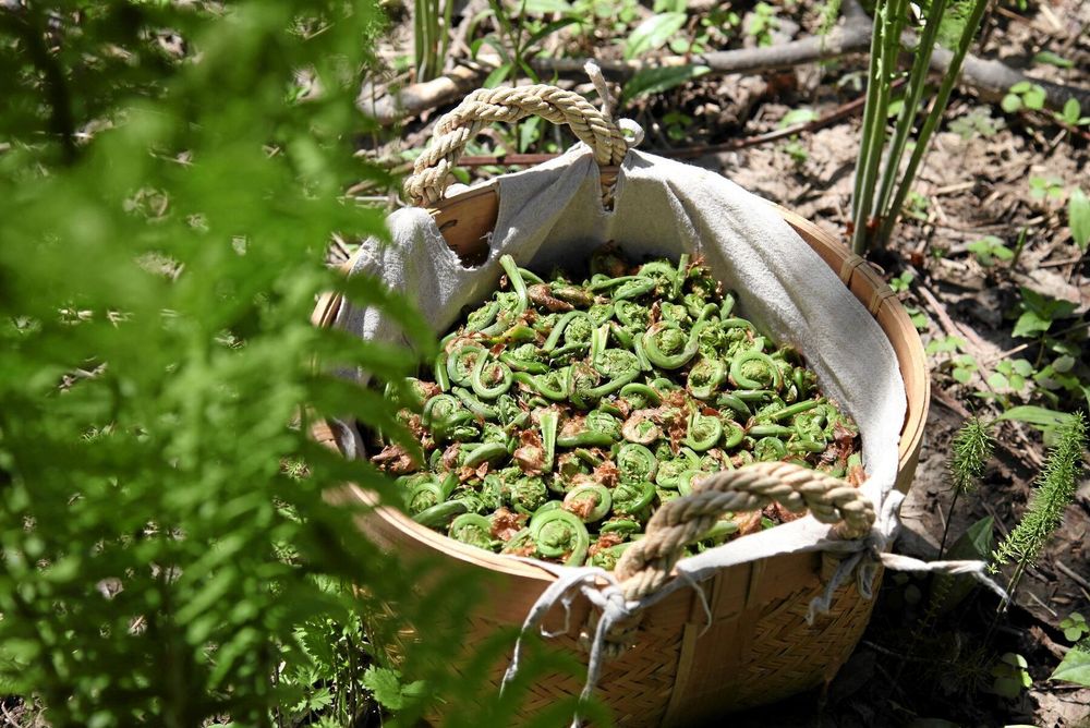 Strutbräken börjar året med att skicka upp små ätliga krusiduller. Förväll och ät med lite smör. Foto: IBL.Foto: MarcQuebec
