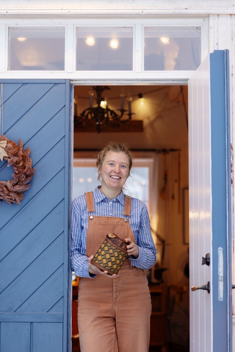 Molly Sjöstam kan ge liv åt minsta träbit. I hennes lilla slöjdverkstad i Gräsmyr karvar hon fram skira blommor och blad på knivskaft, burkar och slevar. Mest populära är hennes träfika: kanelbullar och småkakor i snidat trä som ser så goda ut att man vill ta en tugga.