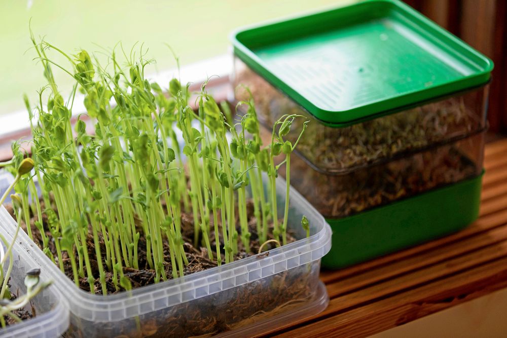 ”Glasburkar används till konservering och mjölksyrning. Plastförpackningar är perfekta att odla i. Bubbelplast och kartonger behövs när man säljer saker på Tradera. Gamla medicinrör passar till fröförvaring.”