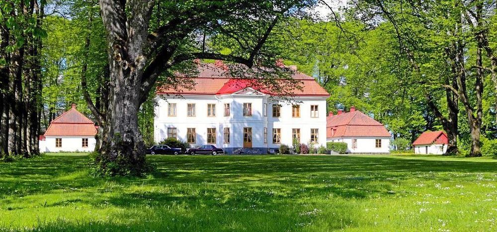 Det vitputsade slottet i Sjöbo byggdes av adelsfamiljen Ramel i mitten av 1700-talet.