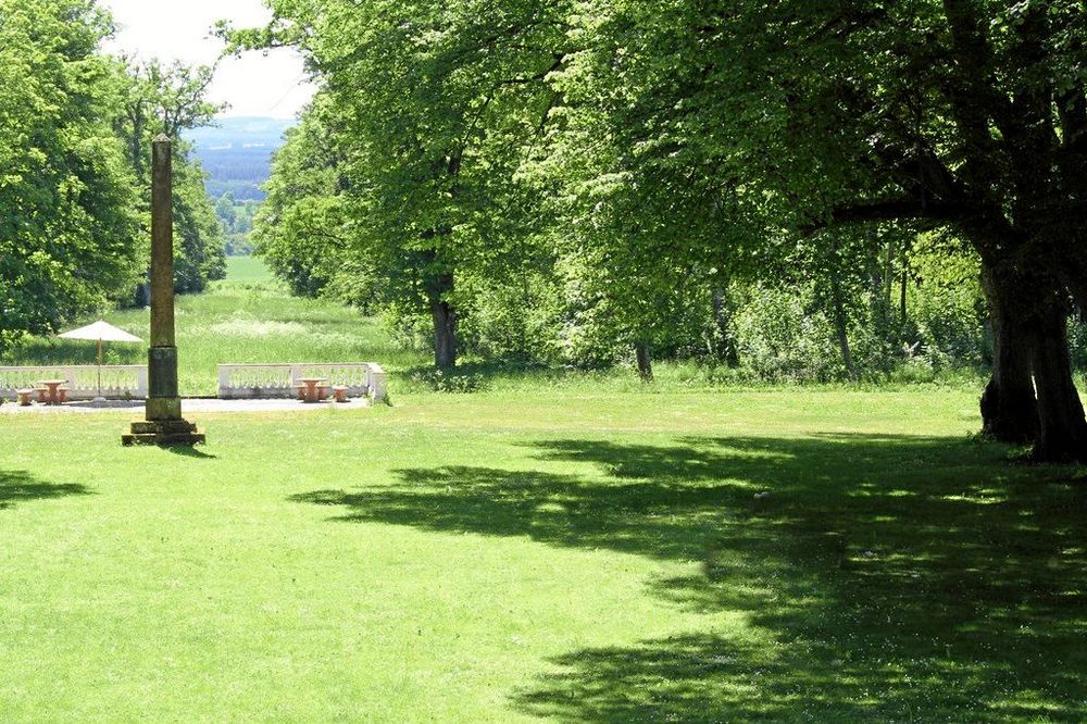 Parken anlades av Hans Ramel och har en stor öppen gräsparterr som inramas av trädallèer längs långsidorna. För bara fyra år sedan anlade förra ägaren en stor trädgårdsanläggning för odling av äpple, päron, plommon, körsbär och andra bär.