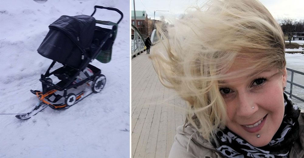 Även hennes son Harald gillar bygget och har sovit gott i den sammanbyggda vagnen och kälken. Hon påpekar att lösningen fungerar bäst när det snöar kraftigt och inte är skottat.