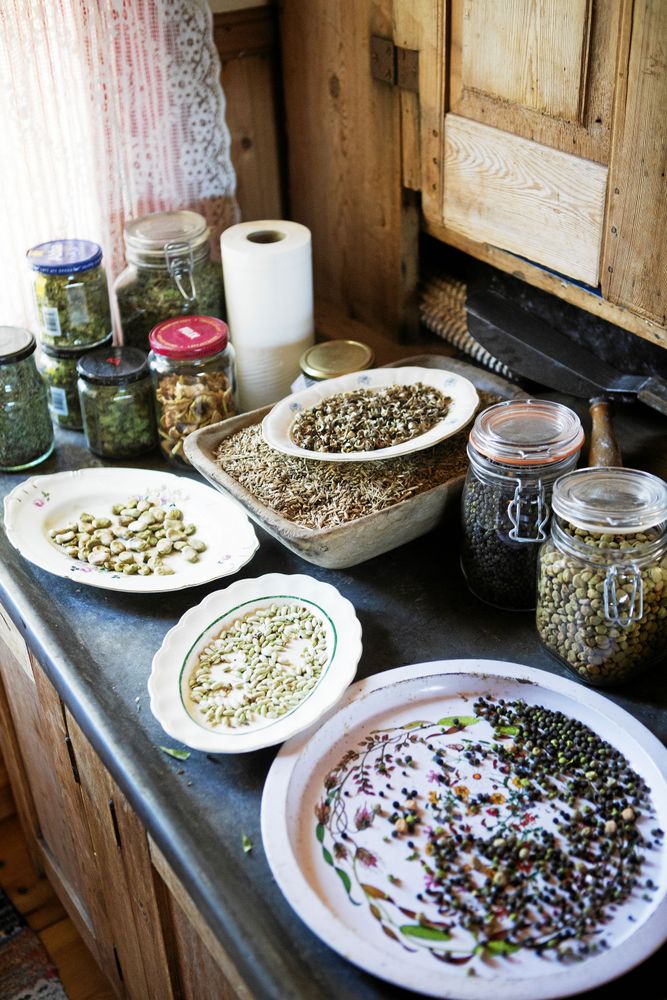 Paret har sedan några år börjat odla gamla kulturväxter som svedjeråg, nakenkorn, dalavete, potatislök och gråärter, anpassade till traktens mark och klimat.