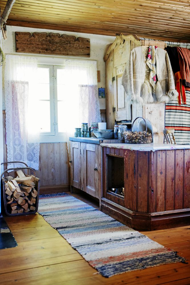 Timrade väggar, lågt i tak, och en knastrande eld.