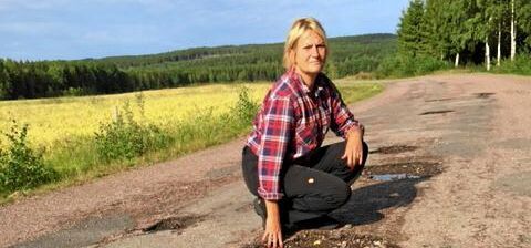 När tung trafik lades om till de två småvägarna nära Molkom förstördes de. Carina Stejmar har tröttnat rejält på de numera så usla vägsträckorna och de rekordstora hålen.