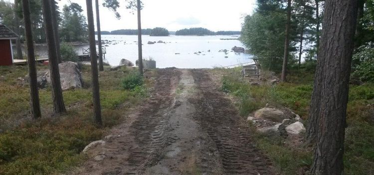 En ö nära stranden har så gott som helt grävts bort ur en sjö i Småland.