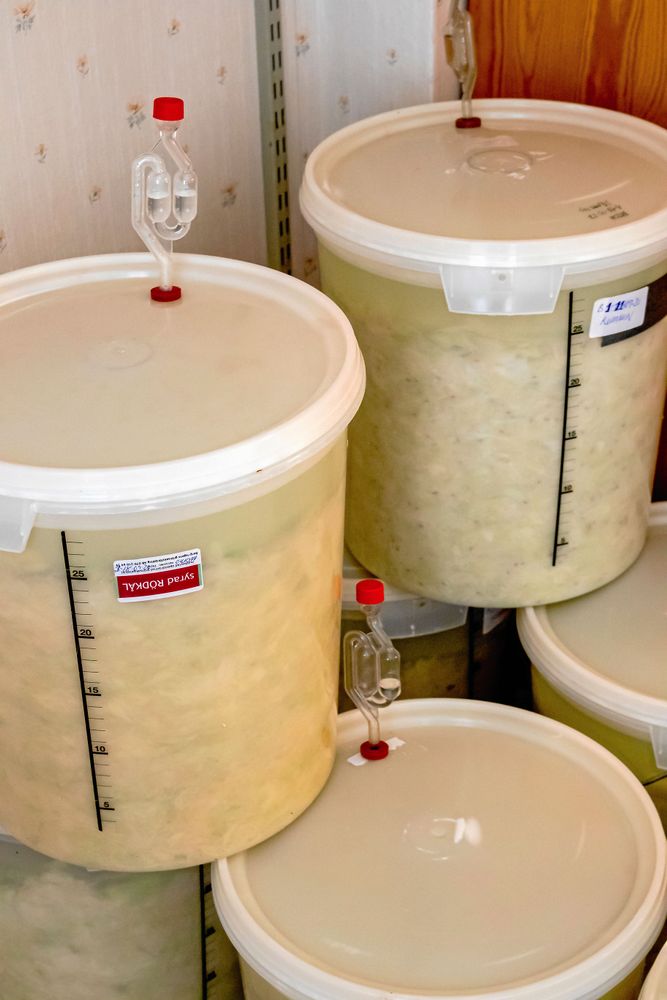 I förråden står vita plasttunnor med olika syrningar och släpper ifrån sig lätta dunster. I kylrummen står etiketterade burkar och flaskor på rad.