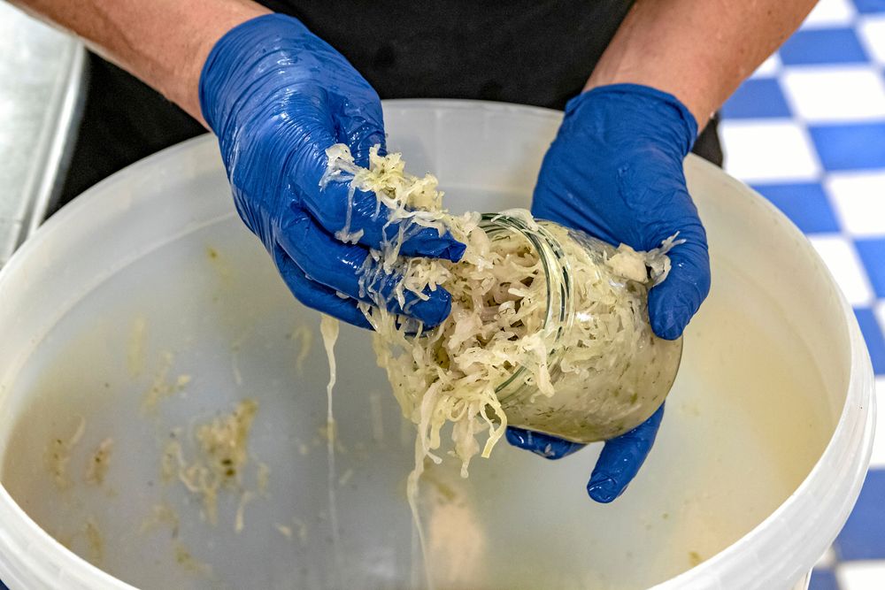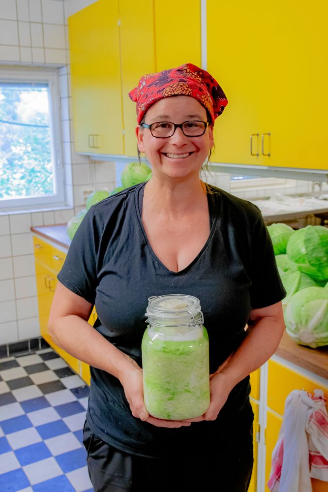 I dag ska hon hämta 100 kilo vitkål från en Krav-certifierad odling i närheten. 2 000 kilo om året går det av hennes viktigaste ingrediens.