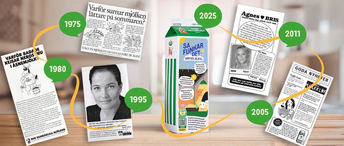 2025 fyller Arlas klassiska mjölkbaksida 50 år. Sedan starten 1975 har baksidan på mjölk-, fil- och yoghurtpaketen informerat, engagerat och underhållit generationer av svenskar – och är fortfarande en av landets mest lästa texter.